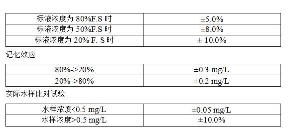 測定下線:0.05mg/L(示值誤差±30%)零點漂移:±5.0%