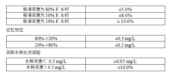 測定下線:0.05mg/L(示值誤差±30%)零點漂移:±5.0%